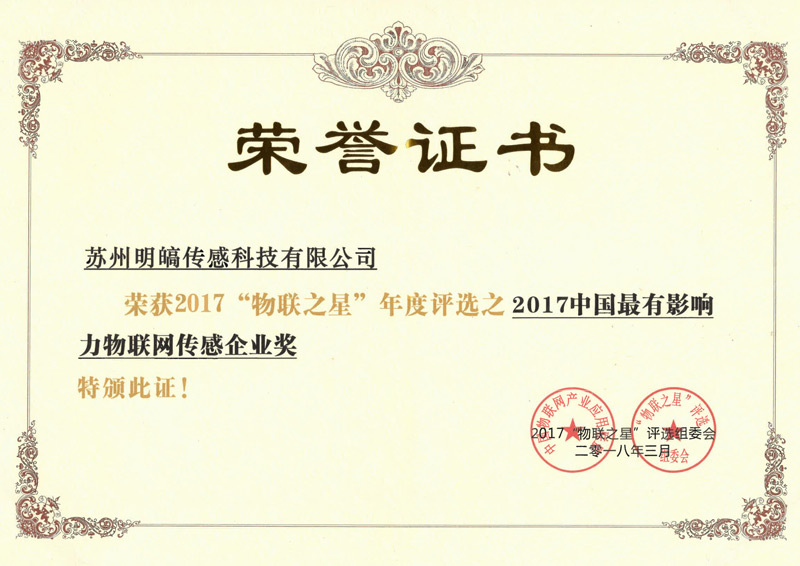 2017中国最有影响力物联网传感企业奖