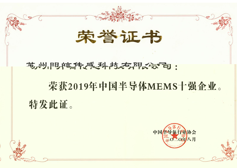 2019年中国半导体MEMS十强企业