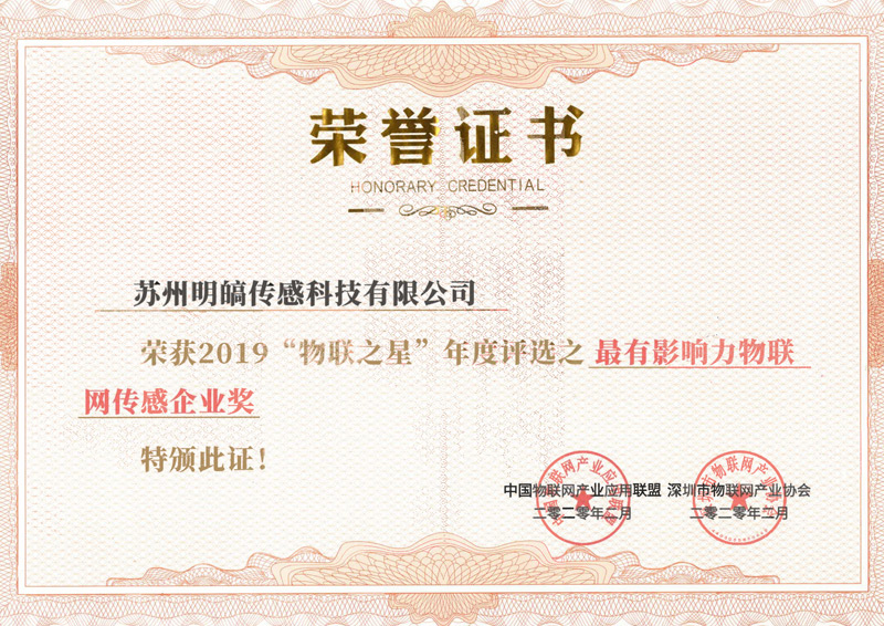 2019中国最有影响力物联网传感企业奖